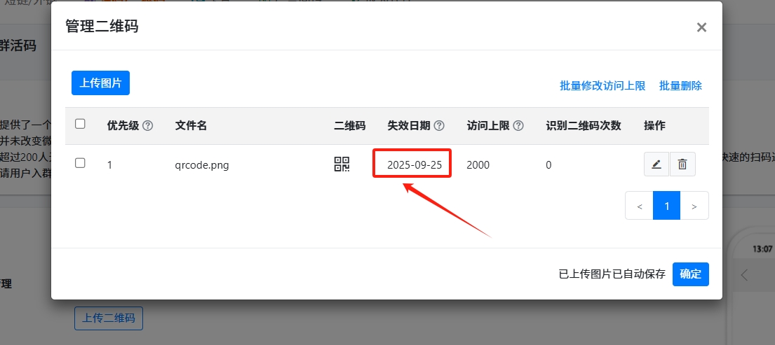 2. 解决方案:在活码的二维码管理里,上传新的未过期微信二维码;或者修改访问上限等