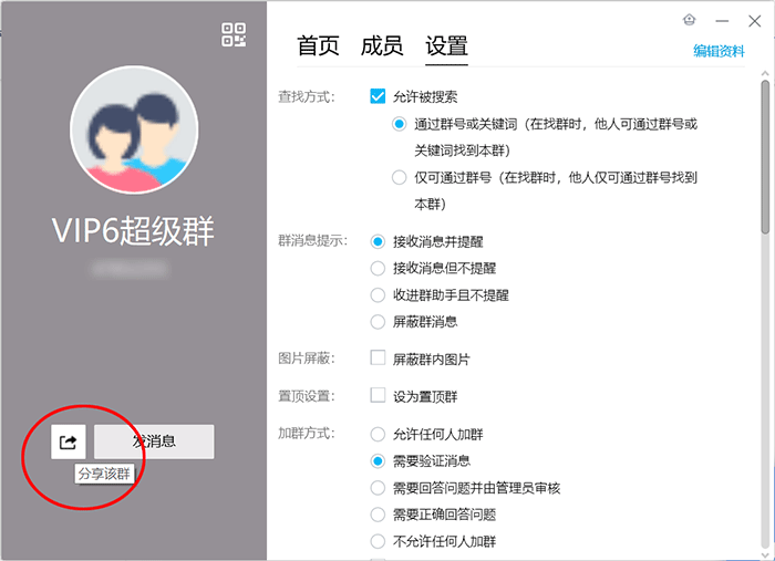 第三步:点击下方的“分享该群”