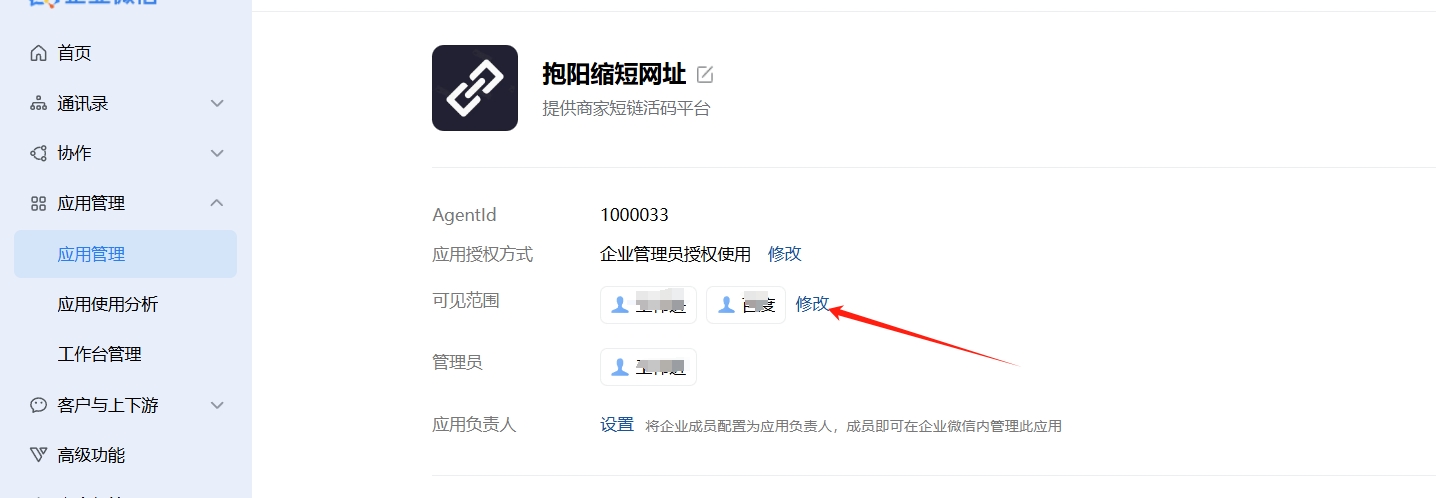 - 用户加企微时提示,该链接已授权在“网址缩短应用”中使用,无法在其他场景使用